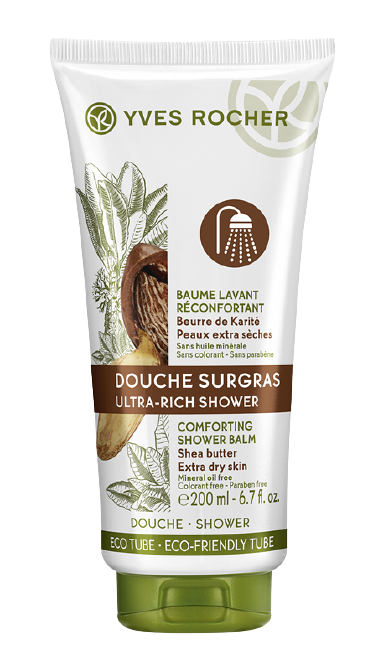 ივ როშეს მცენარეული კოსმეტიკის მკვლევარებმა შეარჩიეს კარიტეს ზეთი, რომელიც ცნობილია აღმდგენი თვისებებით, რათა შეექმნათ ჩამოსაბანი ბალზამი ტანისთვის.